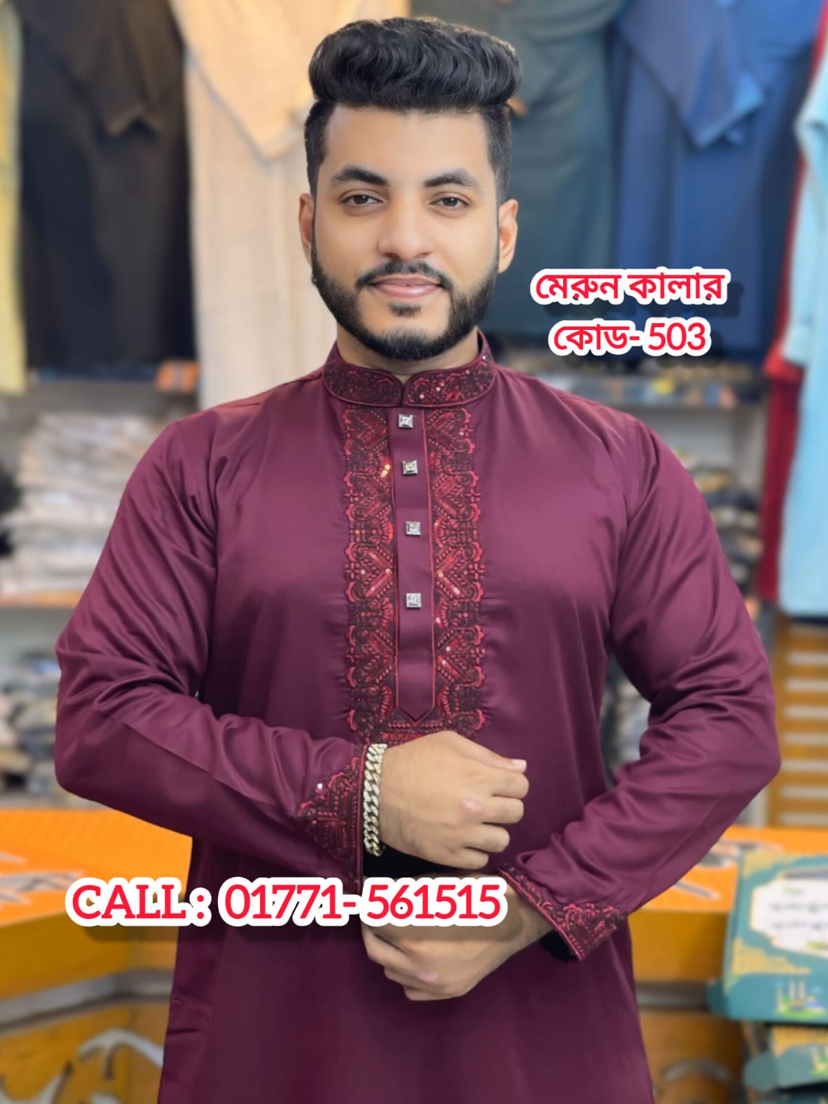 এমব্রয়ডারি পাঞ্জাবি ( কোড : ভি আই পি – 503, মেরুন কালার )
