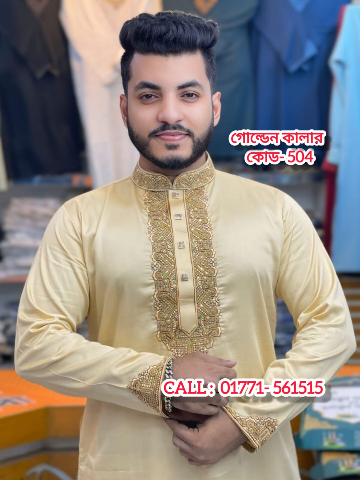এমব্রয়ডারি পাঞ্জাবি ( কোড : ভি আই পি – 504, গোল্ডেন কালার )