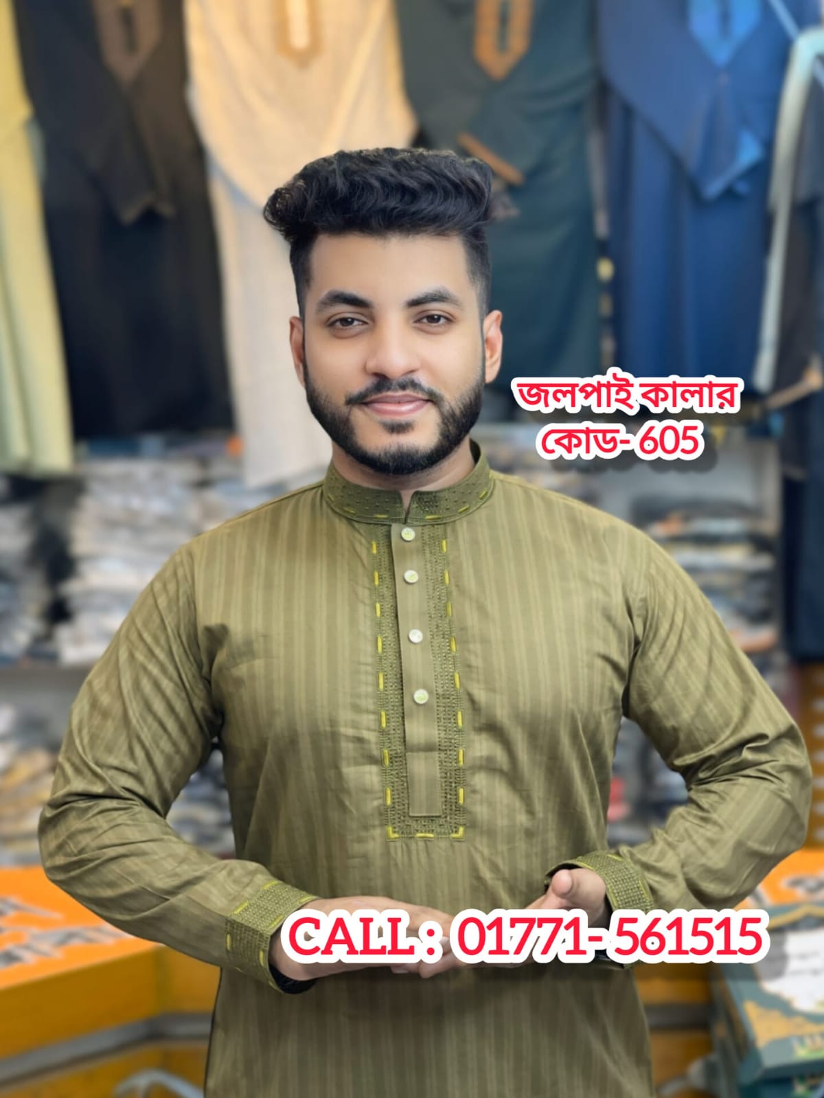 100% চাইনা কটন ফেব্রিক্স পাঞ্জাবি, জলপাই কালার ( কোড : 605 )