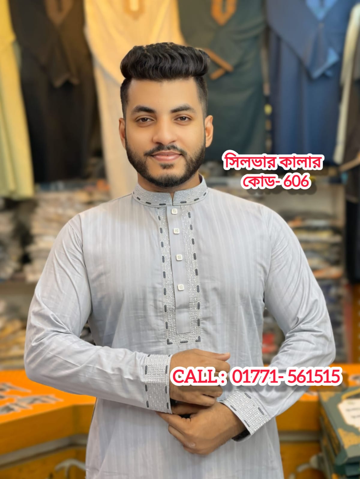 100% চাইনা কটন ফেব্রিক্স পাঞ্জাবি, সিলভার কালার ( কোড : 606 )